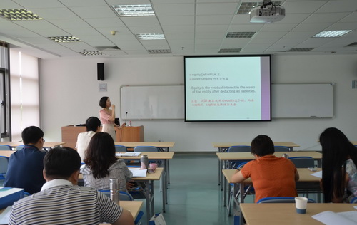 此次培训前,行政事业二期学员深入学习了王部长的来信,在充分感受王部长对领军班学员的浓浓关怀和爱意的同时,也更加深刻的领会了王部长对大家的希冀,对所承担的使命也有了更充分的认识。在王部长来信的激励下,行政事业二期学员以饱满的热情投入到此次的培训学习中。此次培训的安排非常合理,既有用于日常交流的实用商务英语沟通课程,又有侧重于会计专业的会计英语课程。这些课程分别由厦门大学外文学院林丽芳副教授、张龙海教授和我院蹇薇老师主讲。三位老师精心准备,选用的教材和课件非常契合此次培训的目标,课堂安排节奏非常好,大家学习了不同环境下的英语沟通,包括过海关、乘飞机、定旅馆等日常生活英语,还学习了预约会谈、进行价格谈判、主持会议等商务英语;会计英语课程则帮助大家阅读英文报表,学习预算的编制方法等。使大家既学习了语言,又拓宽了知识面。当然,领军人才的培训少不了作业、分组讨论和作业汇报,此次培训又让同学们重温了“没有同学讨论的夜晚将如何度过”这一领军人才培训项目的特色,既难忘,又受益匪浅。通过一个月的集中学习和反复练习,带给大家最直接的收获就是英语知识和表达能力的提高。从开始时的不敢张口,到课堂上的大声诵读,再到问候时的脱口而出乃至闲暇时的风趣调侃,英语学习变得轻松起来。而正是在这一天天的学习、一点点的积累之后,大家开始享受英语表达带来的快乐。除此之外,中国人民大学王化成教授还给大家做了一场精彩的《财务管理新动向》的讲座,使大家了解到财务管理的前沿问题,特别是王教授所做的会计指数研究给同学们留下了深刻的印象。王教授严谨治学的精神、经世济民的学者胸怀更为大家树立了学习的榜样。