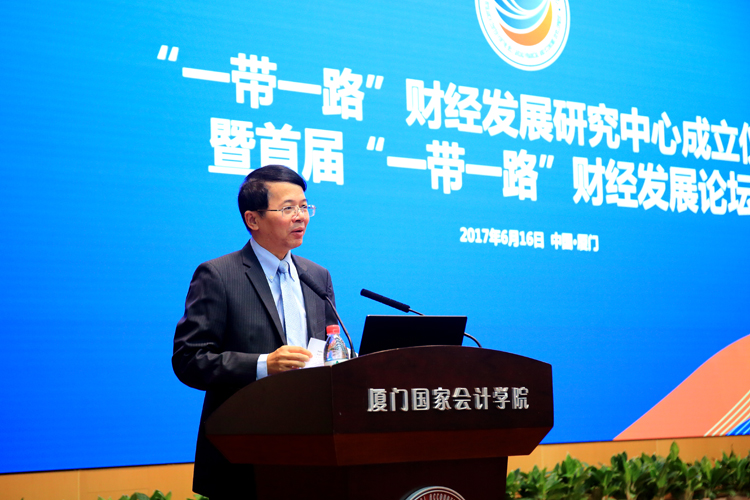 6月16日上午,首届“一带一路”财经发展论坛在厦门国家会计学院学术报告厅成功举办。论坛由我院院长黄世忠主持。商务部国际贸易经济合作研究院副院长张威、中国社会科学院和平发展研究所常务副所长廖峥嵘、中兴通讯股份有限公司副总裁陈虎、我院院长黄世忠分别发表主题演讲,六百多位来自政府、企事业单位、科研院校和新闻界的嘉宾参加了论坛。