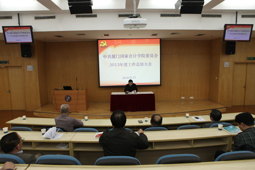 会上,张军书记代表党委作2013年度工作报告。他分别从全面开展教育实践活动、扎实推进反腐倡廉建设、持续深化文明创建工作、不断加强党的组织建设、有效发挥民主党派和群团组织作用、广泛开展志愿服务和公益活动、营造积极向上的校园文化等七个方面,对党委2013年度工作进行系统总结。他指出,2013年,院党委在财政部党组的正确领导下,在厦门市直机关党工委的直接指导下,高举中国特色社会主义伟大旗帜,以邓小平理论、“三个代表”重要思想、科学发展观为指导,学习贯彻党的十八大和十八届三中全会精神,深入开展党的群众路线教育实践活动,党员干部的理想信念进一步坚定,工作作风进一步改进,服务意识进一步强化,规章制度进一步健全,为推进学院稳中求进、持续发展提供坚强的思想、政治和组织保障。院党委荣获“厦门市直机关2011-2012年度先进基层党组织”称号。