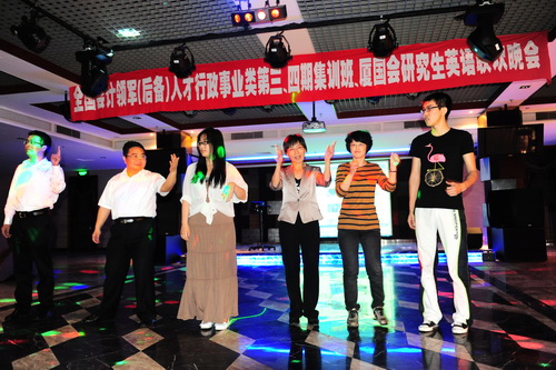 晚会在全国会计领军(后备)人才行政事业类第四期集训班的《You and Me》合唱中拉开序幕。虽然行政四期班的同学们相识才仅仅四天,但他们改编的《You and Me》,唱出了“你和我,手拉手,争做领军人”的心声。行政三期班的王守军同学,用流利的口语表演了英语脱口秀,诙谐的故事情节与丰富的舞台表现,获得了阵阵掌声。我院研究生班的同学们充满朝气的表演,让大家感到年轻人的青春与活力。