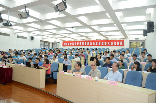 6月14日--17日,由中国注册会计师协会主办,我院承办的2013年全国会计师事务所执业质量检查人员培训班在我院顺利举行。此次培训同时为远程教育培训,我院作为主会场,来自全国各地注协及会计师事务所行业相关人员近120人参加了现场培训,同时各地注协近1000名学员在线观看了视频培训。