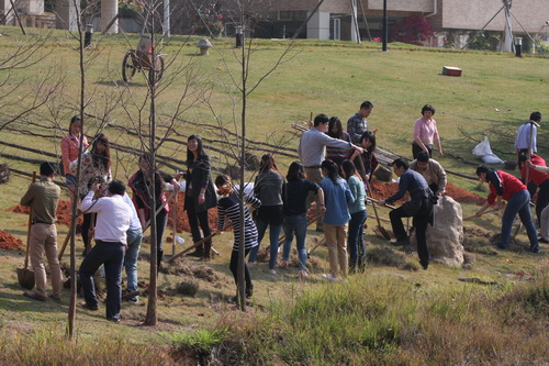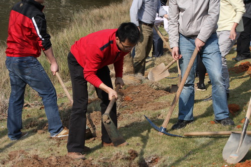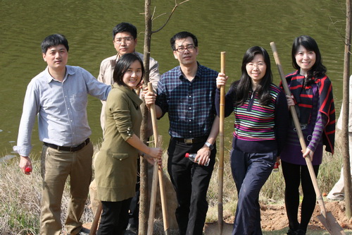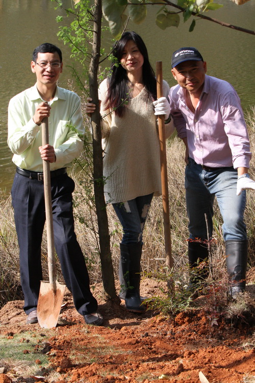 在明确植树区域后,大家热火朝天地挥锹挖土,经过两个多小时的辛勤劳动,在学院物业公司技术人员的指导和帮助下,一棵棵树苗挺直了腰身。看衣襟挥汗如雨,听笑语随风飘荡,植树活动现场气氛浓烈。植树完毕,大家分享着劳动带来的喜悦,纷纷在自己亲手种下的树前合影留念。