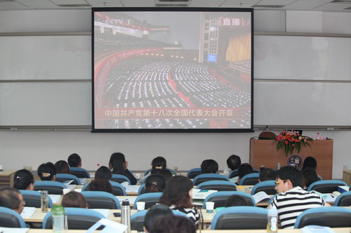 11月8日上午9时,中国共产党第十八次全国代表大会在北京人民大会堂大礼堂隆重开幕。我院认真组织教职员工和2012级全日制会计硕士研究生集中收看了本次大会开幕式的现场直播。院长邓力平、党委书记张军、副院长李海滨和大家一起收看了开幕式,聆听胡锦涛同志代表第十七届中央委员会所作的报告。