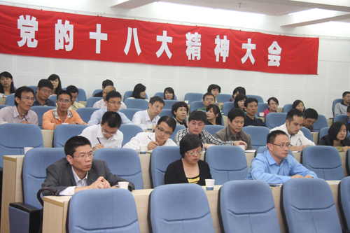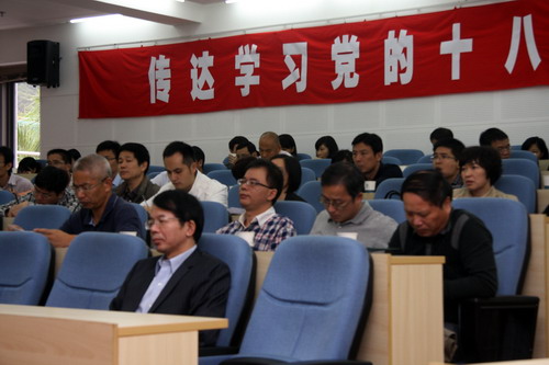 11月21日,我院召开传达学习贯彻党的十八大精神大会。院党委书记张军、副院长李海滨、黄世忠出席会议,学院全体教职员工参加了会议。