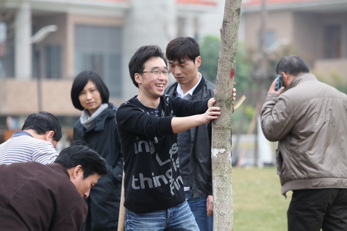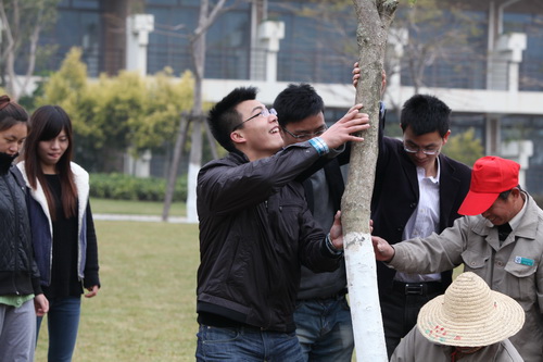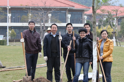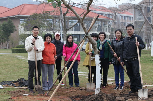 今年种植的是洋紫荆。上午9时,植树活动正式开始,大家根据男女搭配的原则,进行了简单分组。活动现场,大家热火朝天地挖土、放树苗、填土、加固树苗……经过一个多小时的辛勤劳动,在学院物业公司技术人员的指导和帮助下,一棵棵树苗挺直了腰身。虽然鞋子、身上都沾满了泥土,但大家表示,植树活动很有意义,既美化校园环境,又能在劳动中团结协作、感受快乐!