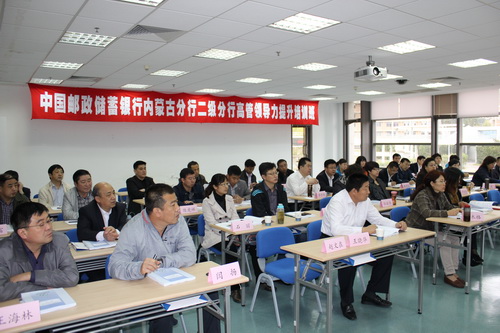 中国邮政储蓄银行内蒙古分行成立以来,在转型和发展上取得了比较显著的成绩。面对激烈的市场竞争和严峻的宏观经济形势,对各分支行管理能力提升缓慢与业务快速发展的矛盾日益突出,高管人员的经营管理理念、合规运营意识等都迫切需要提升。我院以当前宏观经济以及金融行业的热点难点为切入点,围绕领导力提升的主题,从“团队建设、沟通与领导艺术”、“领导者心理健康”、“全面预算管理的运用”、“战略成本管理”、“我国宏观经济形势运行分析”、“商业银行对公业务操作风险点及法律合规风险防范”、“当前中国宏观经济金融形势分析及其对商业银行的影响”等方面精心设计了相关培训课程。授课由厦门大学、北京信息科技大学、福建行政学院,厦门国家会计学院、中国建设银行和交通银行的师资力量组成。此外,我院还安排了破冰训练(素质拓展)以及与中国邮政储蓄银行厦门分行交流等活动。人力资源部邢光亮总经理用“高层次、大规模、全脱产的高级管理人员区外集中培训,还是第一次,机会难得,意义重大”来评价本次培训班。
