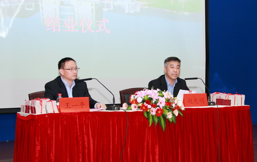 3 月28 日,国资委2012年第一期国有企业总会计师岗位培训班结业仪式在《朋友》的歌声中开始,又在这首歌中结束。国资委干部教育培训中心赵光明处长与我院教务处王一平副处长出席了结业仪式,为学员颁发结业证书。
