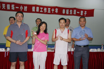 闭幕式上,邓院长发表了简短的讲话。他表示,首届乒乓球赛举办得很成功,学院今后将继续举办各种喜闻乐见的活动,丰富大家的业余生活,促进校园精神文明建设。希望全体教职工继续发扬赛场上积极进取、奋发向上的拼搏精神,投入到学院各项工作中去,加倍努力做好本职工作,为学院事业的发展做出更大的贡献。最后,邓力平院长、张军书记、李海滨副院长为获奖的团体和个人颁发奖牌,并合影留念。我院首届乒乓球赛在欢声笑语中圆满地画上了句号。