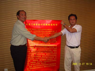 在27日晚的总结交流会上,全国政协干部培训中心主任、北戴河管理局局长乔梁同志对学院给予的大力支持表示衷心感谢,并代表全国政协干部培训中心全体工作人员和全国政协第58期干部培训班的全体学员,亲手交给我院邓力平院长一封感谢信,感谢信高度评价学院:“想我们之所想,急培训班之所急……。高度重视,全力以赴,严密细致,滴水不漏”;“在短短十几天里,贵学院管理团队的凝聚力、工作的高效率以及员工的高度责任感给我们留下了极其深刻的印象”。