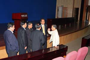 我院邓力平院长、黄世忠副院长在校门口迎接客人的到来。邓院长向林主席一行汇报了学院的发展情况,介绍了学院的各项教学配套设施。随后,林主席视察了学术报告厅、教学楼、公寓和餐厅等设施,详细了解学院的各项设施和接待能力,对学院优美的环境给予高度评价。