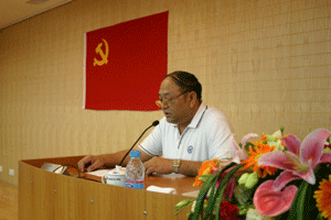 副院长、院党委副书记李海滨教授在会上作总结讲话。他回顾历史,认为中国共产党的85年是伟大理论和伟大实践结合的85年,是前赴后继波澜壮阔的85年。总结学院党委成立一年多来各项工作的开展情况,李副书记认为党组织的凝聚力和战斗力得到了提高,党员的党性观念得到了增强,他肯定了广大党员教职员工在学院建设中发挥的先锋模范作用。展望未来,李副书记代表学院党委对全体党员提出了三点要求:一是要自觉增强党的意识;二是要不断提高基本素质;三是要切实发挥模范作用。