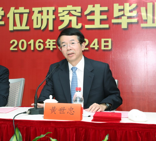 接下来,黄世忠院长以师长的身份与同学们分享了他教书育人三十年的心得体会。他说,同学们毕业后走进社会,要化压力为动力,努力培养一种脚踏实地、埋头做事的心性,坚持锤炼一份耐得寂寞、乐得辛苦的精神,以良好的心态和坚强的毅力,把握数据时代赋予的大好机遇,提升自己,迎接挑战,贡献社会,从而成就一番作为。他说,在数据星球时代,你们这批90后的原住民,比我们这些60后的新移民要幸运得多,也必将比我们更有大作为。因为你们年纪轻轻就有了明确的人生目标,并为之奋斗,尤其是你们当中有很多人当时是跨学科考到会计专业来的。我们的时代需要这种目标明确、跨界创新、跨界竞争、跨界颠覆的精神,这也恰恰是事业成功的关键元素;因为你们同时遇上会计学科由冷转热时期和信息爆炸的大好时期。一方面,会计信息不可或缺,会计人才举足轻重;另一方面,商业模式日新月异,技术创新突飞猛进,大众创新万众创业风起云蒸,大数据等信息科技将赋予你们无穷的力量。你们生而逢时,更当善于抓住时代赋予的机遇,博观约取,厚积薄发,勇于作为。最后,黄世忠以中国古典哲学经典表述“天道酬勤,地道酬善,商道酬信,业道酬精”与同学们共勉,并祝大家事业有成,家庭幸福!