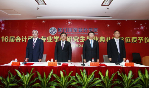 6月24日,厦门国家会计学院2016届会计硕士专业学位研究生毕业典礼隆重举行。我院党委书记刘光忠,院长黄世忠,党委委员、纪委书记、院长助理李进西出席毕业典礼。学院各处室负责人、教研中心老师和68名毕业生共同参加毕业典礼。