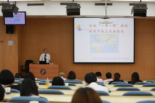 4月22日,学院邀请厦门市委党校副校长彭心安教授作“一带一路”专题辅导报告。该讲座由院长助理李进西主持,院党委书记张军、副书记沈毅和学院教职员工一起聆听了讲座。