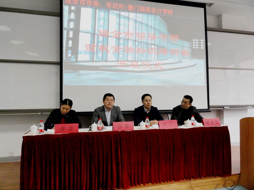 12月23日,瑞金市领导干部财税金融知识培训班在我院开班。我院党委书记张军、财政部挂职干部、瑞金市委常委、副市长周杰、瑞金市人大副主任章芸及瑞金市直相关部门选派的近60名干部出席并参加了开班仪式。