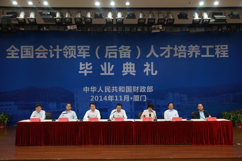 财政部党组成员、部长助理余蔚平、会计司司长杨敏、中国注册会计师协会副会长兼秘书长陈毓圭、厦门国家会计学院院长邓力平、北京国家会计学院院长高一斌、上海国家会计学院院长李扣庆、中国航空工业集团公司副总经理、总会计师顾惠忠出席典礼。会计司司长杨敏主持典礼并宣读了《财政部关于颁发敖都吉雅等182位同志全国会计领军人才毕业证书的通知》。