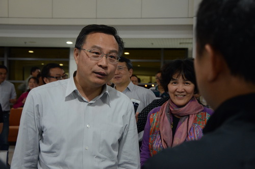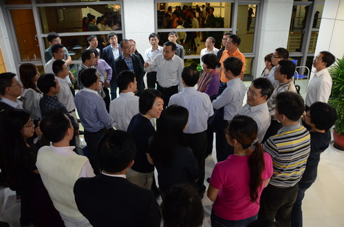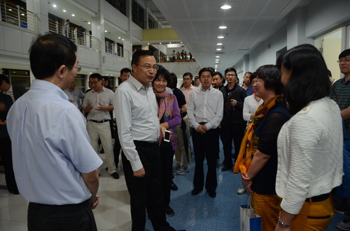 11月2日晚8点40分,财政部党组成员、部长助理余蔚平刚下飞机就来到学院教学楼看望了正在进行分组讨论的全体集训学员。学员们听说余助理来了,纷纷走出教室,站在楼梯和走廊上,欢迎余助理到来。余助理一边走一边向两边学员询问参加领军项目大家有什么收获,对这个项目有什么建议,对当前会计热点有什么看法。学员们与余助理面对面交流,近距离聆听教诲,深深感受到了余助理对我国会计事业的满腔热爱,深切体会到余助理对全国领军人才的亲切关怀和殷切希望。