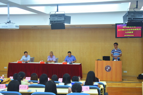9月16日上午,我院2014级全日制MPAcc研究生新生入学教育在教学楼207教室举行。研究生处处长王一平、后勤管理处处长李进西、信息管理处网络科科长叶晖、院团总支书记林学颖出席活动并讲话。