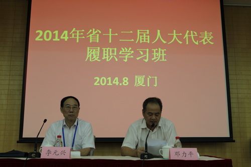 全国人大常委会委员、福建省人大常委会副主任、我院院长邓力平出席第一期履职学习班开班式并讲话。受福建省人大常委会领导委托,福建省人大常委会委员、人事代表工作室主任李元兴在第二期履职学习班开班式上讲话。福建省人大代表、省人大常委会委员、我院副院长黄世忠参加了本次学习。