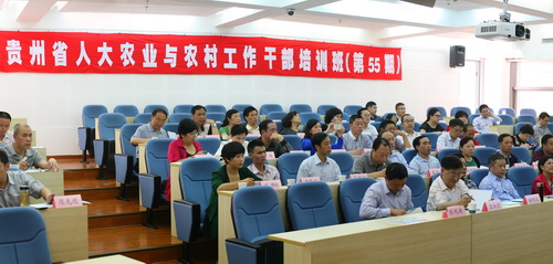 参加本次干部培训班的是来自贵州省各市、州人大常委会分管农委工作的领导、农委主任、部分县区人大常委会领导等约60人。培训期间,中国社科院农村发展研究所宏观经济室主任党国英教授为学员们解读了今年中央一号文件的相关精神;福建农林大学博士生导师王松良教授从生态农业的角度介绍了现代农业发展现状和经验;我院袁政慧老师为大家讲解了现代政务礼仪的相关知识。学员们围绕所学课程内容与授课老师进行了热烈的互动讨论,授课教师们精彩的讲授和答问得到了学员们的高度评价。学员们还就人大农业与农村工作开展了分组座谈。