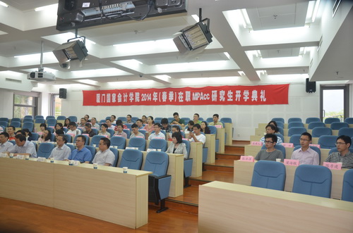 5月17日上午,我院2014年(春季)在职MPAcc研究生开学典礼在教学楼209教室隆重举行。邓力平院长、黄世忠副院长出席并讲话。宁波市财政税务学校史波副校长、学院各处室负责人、教研中心教师和2014年(春季)在职MPAcc新生一起了参加开学典礼。开学典礼由研究生处处长王一平主持。