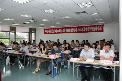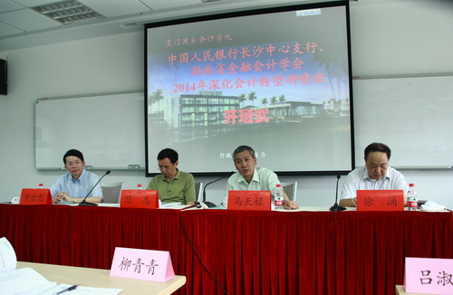 6月4日,中国人民银行长沙中心支行、湖南省金融会计学会2014年深化会计转型研修班在我院开班,来自湖南省各银行的财务人员和相关部门的管理人员将参加为期七天的培训。我院黄世忠副院长,中国人民银行会计财务司陈志司长、中国人民银行长沙中心支行党委书记马天禄行长、湖南省金融会计学会会长徐涌出席了开班仪式。