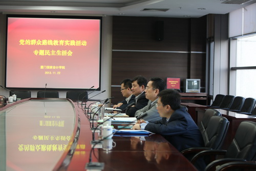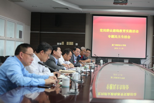 会上,张军书记介绍了专题民主生活会的准备情况,代表领导班子进行对照检查,报告了领导班子执行党的政治纪律和贯彻中央“八项规定”的有关情况,对“四风”方面存在的突出问题进行查摆,并从思想认识根源进行深刻剖析。针对查摆出来的“四风”问题,院领导班子从思想教育、工作作风、廉政建设、制度建设四个方面明确了今后的努力方向和改进措施。在领导班子对照检查的基础上,张军书记联系个人思想实际、岗位职责和成长经历,紧扣“四风”,进行深刻地自我剖析,提出具体的整改措施。邓力平院长和黄世忠副院长围绕学院发展中的重大问题提出了重要建议,院党委委员对院领导班子及成员提出了宝贵的意见,大家出于公心,坦诚相见,实事求是,诚恳进行批评与自我批评。