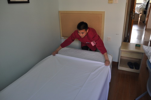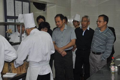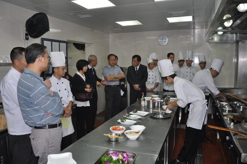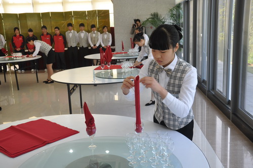 邓力平院长及相关处室负责人现场观摩了比赛。比赛中,参赛选手严格按照五星级酒店的标准进行,台布一次定位,餐具、饮具摆放得整齐、讲究,餐巾花折叠得造型各异,斟酒时姿势协调优雅,为此次技能比赛开了好头。随后,在学员公寓、餐厅C区,作为此次竞赛的另外两个项目,公寓服务和厨艺比赛相继展开角逐,选手们也展现出了良好的精神面貌和高品质的服务技能,精彩的比赛赢得现场观摩教职员工的阵阵掌声。
