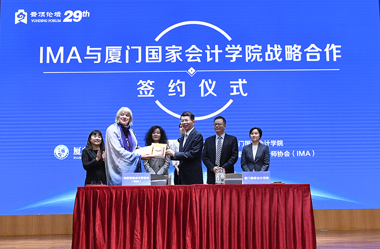 在全场来宾的见证下,黄世忠院长与Liv Watson女士代表厦门国家会计学院和IMA正式签署战略合作协议,并互赠纪念品。