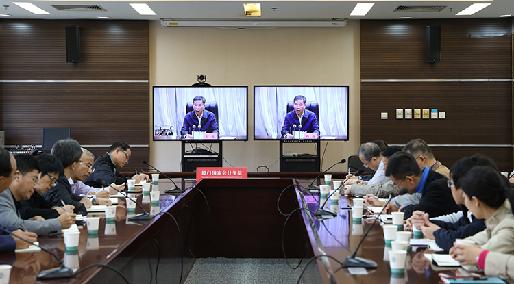 11月29日上午,财政部召开学习贯彻党的十九届四中全会精神党员干部动员大会,财政部党组书记、部长刘昆作动员讲话,刘昆部长对我部深入学习贯彻党的十九届四中全会精神进行动员部署,并对下一步学习贯彻提出明确要求。大会由部党组成员、副部长邹加怡主持。学院作为视频分会场,党委书记刘光忠,党委委员、副院长李进西,党委委员、院长助理黄京菁和全体党员干部参加了会议。