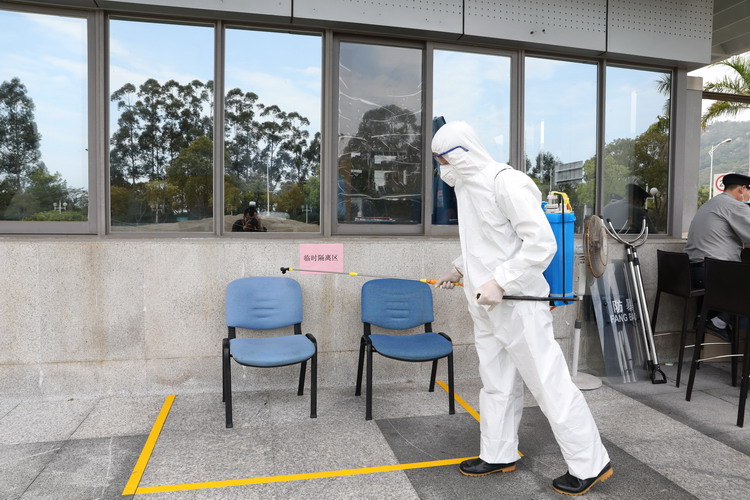 为做好隔离区域管理,每间隔离房均放置《留观人员须知》,同时一次性配足生活用品、个人消毒物资。客房部每日定时对隔离区内部公共区域进行消毒作业,外围区域则由物业每日消杀。为保障无接触服务,留观人员餐食由餐厅人员将餐食送隔离区域后,交客房分配至各房门口,由隔离人员开门自取。