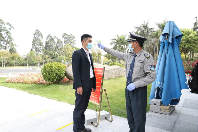 学院门岗为校园的第一道防线,必须严防严守。疫情期间学院实行封闭管控强化入校管理,教职工、学生和乙方员工进入校门一律进行体温检测,佩戴口罩方可进入校园,同时尽量避免非必要人员接触。对此,物业安保人员演练排查各类人员出入校门的防疫措施。
