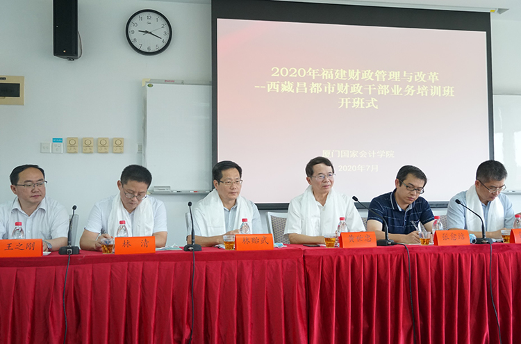 7月6日,2020年福建财政管理与改革--西藏昌都市财政干部业务培训班开班式在学院顺利举行。学院黄世忠院长、福建省财政厅林贻武副厅长、林清处长、张翼飞主任、西藏昌都市财政局张愈结副局长、王之刚副局长出席开班式,开班式由福建省财政厅林清处长主持。