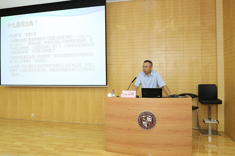 根据学院党委部署安排,7月31日下午,学院召开党委理论学习中心组(扩大)会议暨民法典宣讲报告会,邀请厦门大学法学院特聘教授、中国民法研究会常务理事、中国外法史研究会副会长徐国栋教授,为我们讲述“民法典的创新与司法适用展望”。学院党委书记韩景义,党委委员、副院长李进西,党委委员、院长助理黄京菁和全体教职员工一起聆听了报告。报告会由李进西同志主持。
