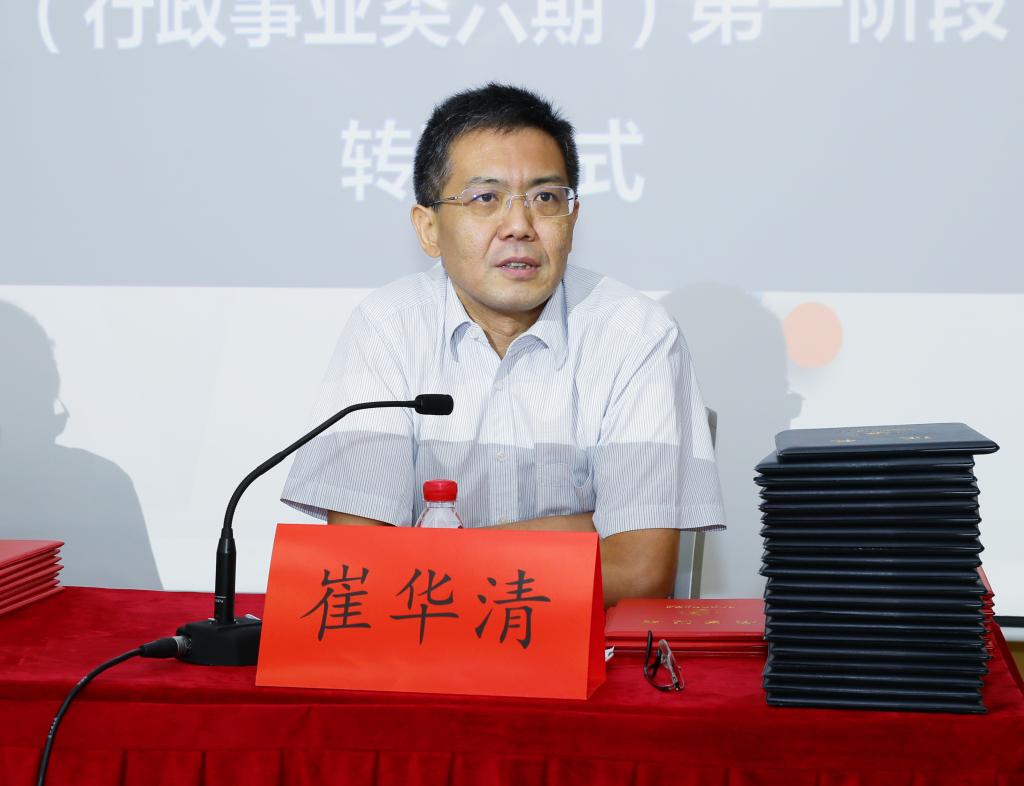 接下来,崔华清处长代表主管单位对全体学员顺利完成第一阶段培养任务表示祝贺,感谢厦门国家会计学院领导和老师对培养工程工作的付出和努力,充分肯定学员在学术研究、职务晋升、综合素质提升、促进社会发展等方面取得的丰硕成果。崔处长强调,世界百年未有大变局与中华民族伟大复兴战略全局交汇,新冠肺炎疫情等黑天鹅、灰犀牛事件增加了世界发展的不确定性,学员应彰显作为行业高端人才的作用,在变局中开拓新局,在危机中寻找新机。并提出四点要求:一是坚定政治立场。政治过硬是新时期高素质会计人才的首要标准。二是发奋成长成才。要珍惜宝贵的学习机会,重视学习,善于学习,在学习中不断进步,在实践中不断增长才干。三是勇于担当作为。以所学知识回报单位发展、行业发展和国家发展。四是锤炼品德修为。从自身内省中提升道德修为,做到明大德,守公德,严私德,恪守国家会计学院校训。