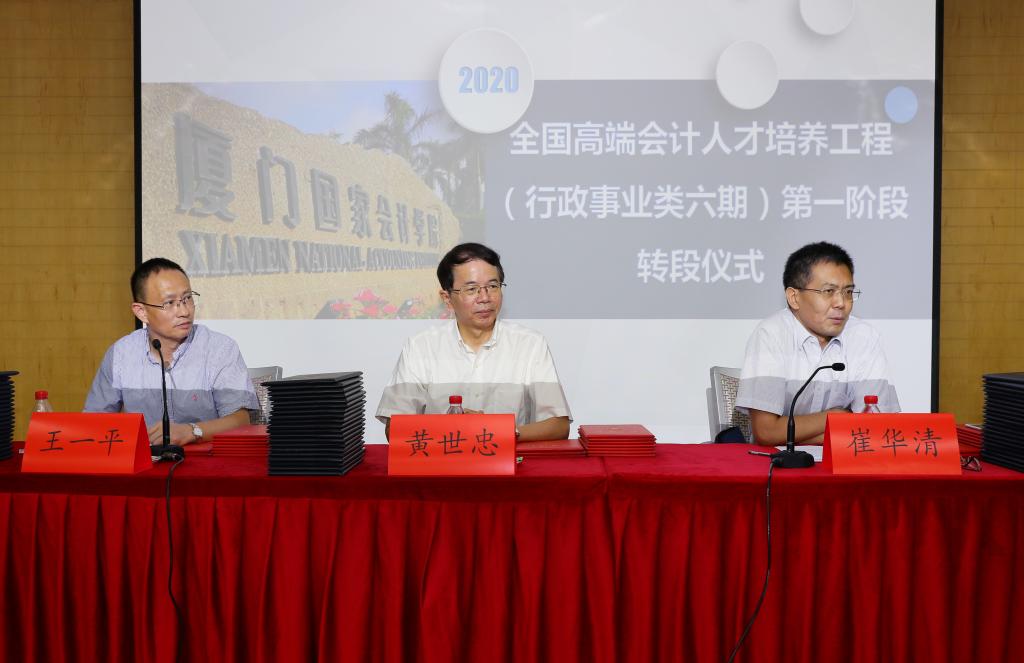 8月16日至9月5日,全国高端会计人才培养工程(行政事业类六期)学员齐聚厦门进行集训。8月22日,云顶山下,风轻云淡,全国高端会计人才培养工程(行政事业类六期)第一阶段转段仪式在厦门国家会计学院成功举行。厦门国家会计学院院长黄世忠、财政部会计司会计人员管理处处长崔华清出席并讲话,来自全国各地的60余名学员参加了转段仪式,厦门国家会计学院教务一处处长王一平主持转段。