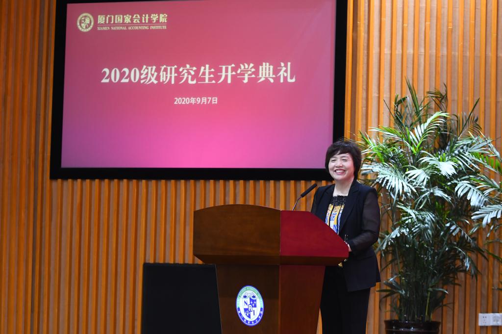 9月7日上午9:00整,厦门国家会计学院2020年研究生开学典礼在A报告厅举行。