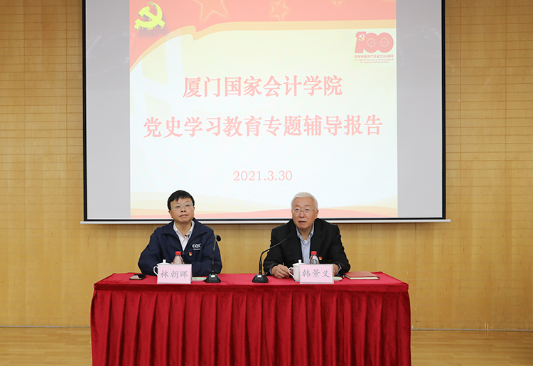 根据学院党委部署安排,3月30日上午,学院邀请厦门市委党校常务副校长、一级巡视员林朝晖作党史学习教育专题辅导报告会。报告会由学院党委书记韩景义同志主持。学院党委领导班子成员和全体师生党员一起聆听了报告。