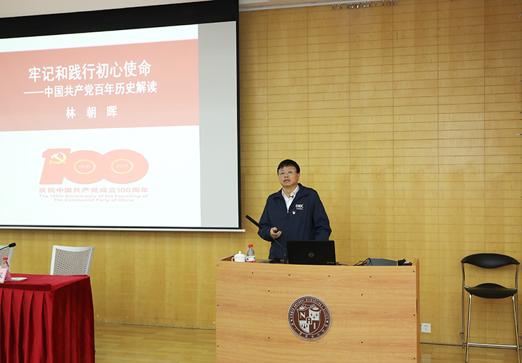林校长以“牢记和践行初心使命——中国共产党百年历史解读”为题,紧紧围绕学习领会习近平总书记在党史学习教育动员大会上的重要讲话精神,从为什么要学习党史出发,解读中共百年历史的建党伟业、建国伟业、强国伟业,分析中共百年历史的经验启示,回顾中国共产党历次全国代表大会、中华人民共和国开国大典等历史事件,带领学院师生党员重温了波澜壮阔的中国共产党百年历史。