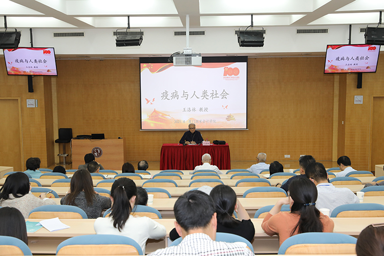 4月16日,我国著名经济学家、学院特聘荣誉教授王洛林先生应邀莅院作《疫病与人类社会》专题讲座。学院党委书记韩景义,院长黄世忠,党委委员、副院长李进西,党委委员、副院长黄京菁和全体教职员工一起聆听了讲座。讲座由黄世忠院长主持。
