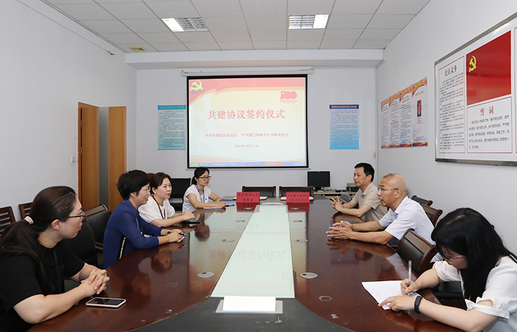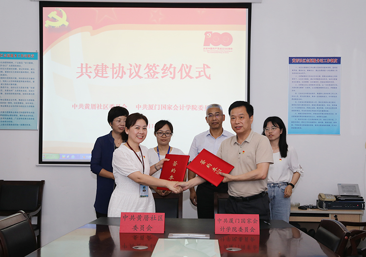 为深入学习习近平总书记在党史学习教育动员大会上的重要讲话精神,贯彻落实《财政部开展党史学习教育实施方案》,积极响应落实厦门市委组织部等七部门关于“双报到”工作的部署要求,5月13日,学院与黄厝社区签订共建协议。学院党委委员、副院长李进西出席签字仪式,学院党办(院办)主任谢永添与黄厝社区党委书记林惠芬签署协议。