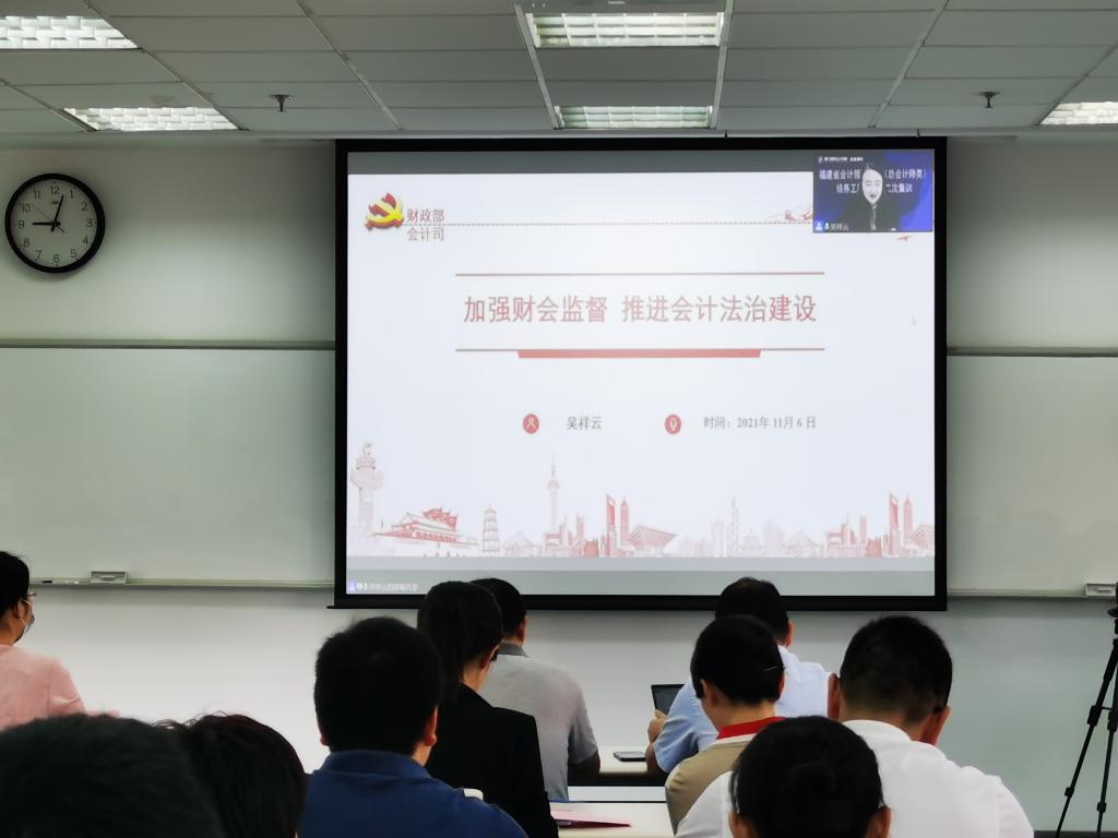 11月6日,福建省会计领军人才(总会计师类)培养工程项目第二次集训在学院开始集训第一课。本次课程荣幸地邀请到财政部会计司吴祥云副司长通过云课堂的方式在线为学员们授课。