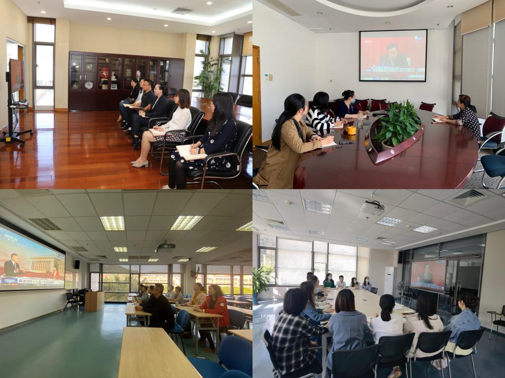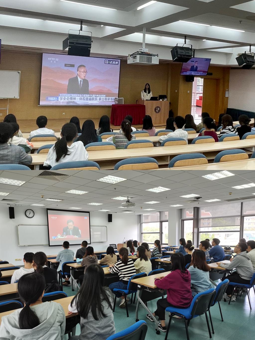 11月11日傍晚全会发表会议公报后,学院党委第一时间通过学院党建学习微平台向全体师生党员推送会议公报全文,要求师生党员认真学习领会会议精神。11月12日上午,学院各基层党组织和广大师生员工按照学院党委的部署安排,集中收听收看了中共中央新闻发布会实况直播,学习领会党的十九届六中全会主要精神并开展交流研讨。