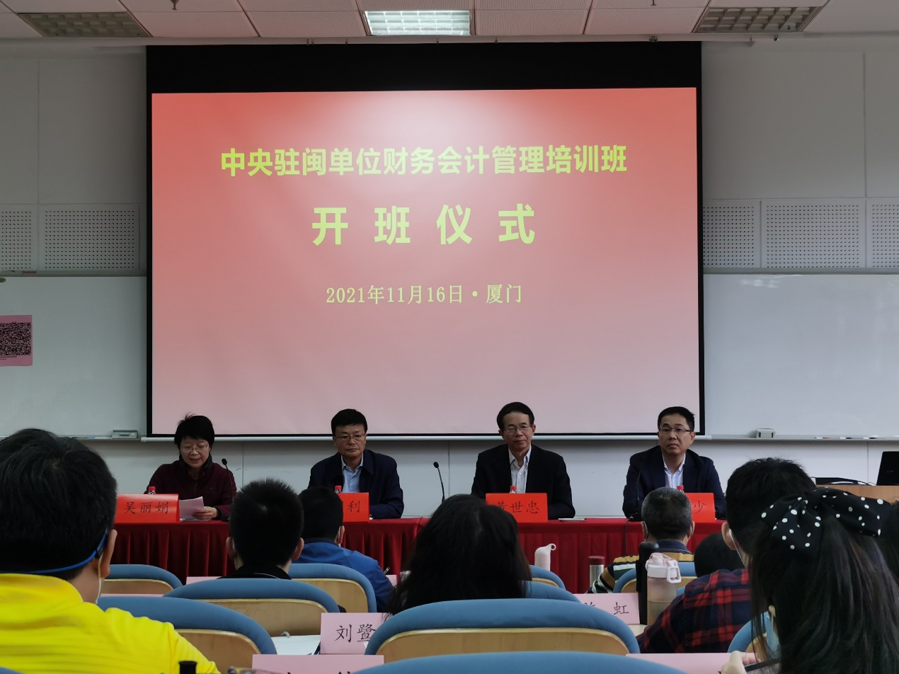 近日,中央驻闽单位财务会计管理培训班在我院顺利开班,福建省政协经济委副主任王国利、厦门国家会计学院院长黄世忠、福建中直会计学会会长吴丽娟共同出席开班式并讲话,开班式由福建省中直会计学会秘书长施英少主持。