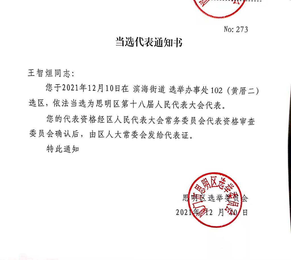 12月10日,是思明区第十八届人大代表选举投票日。根据选举工作要求,在区第十八届人大代表中,适当提高基层代表特别是一线的工人、社区干部和专业技术人员代表的比例。学院“一带一路”财经发展研究中心副主任王智烜副教授当选区人大代表。这充分体现人大代表的广泛性、代表性、先进性要求,同时也是对学院充分发挥资源和智力优势服务地方经济社会发展的充分肯定。