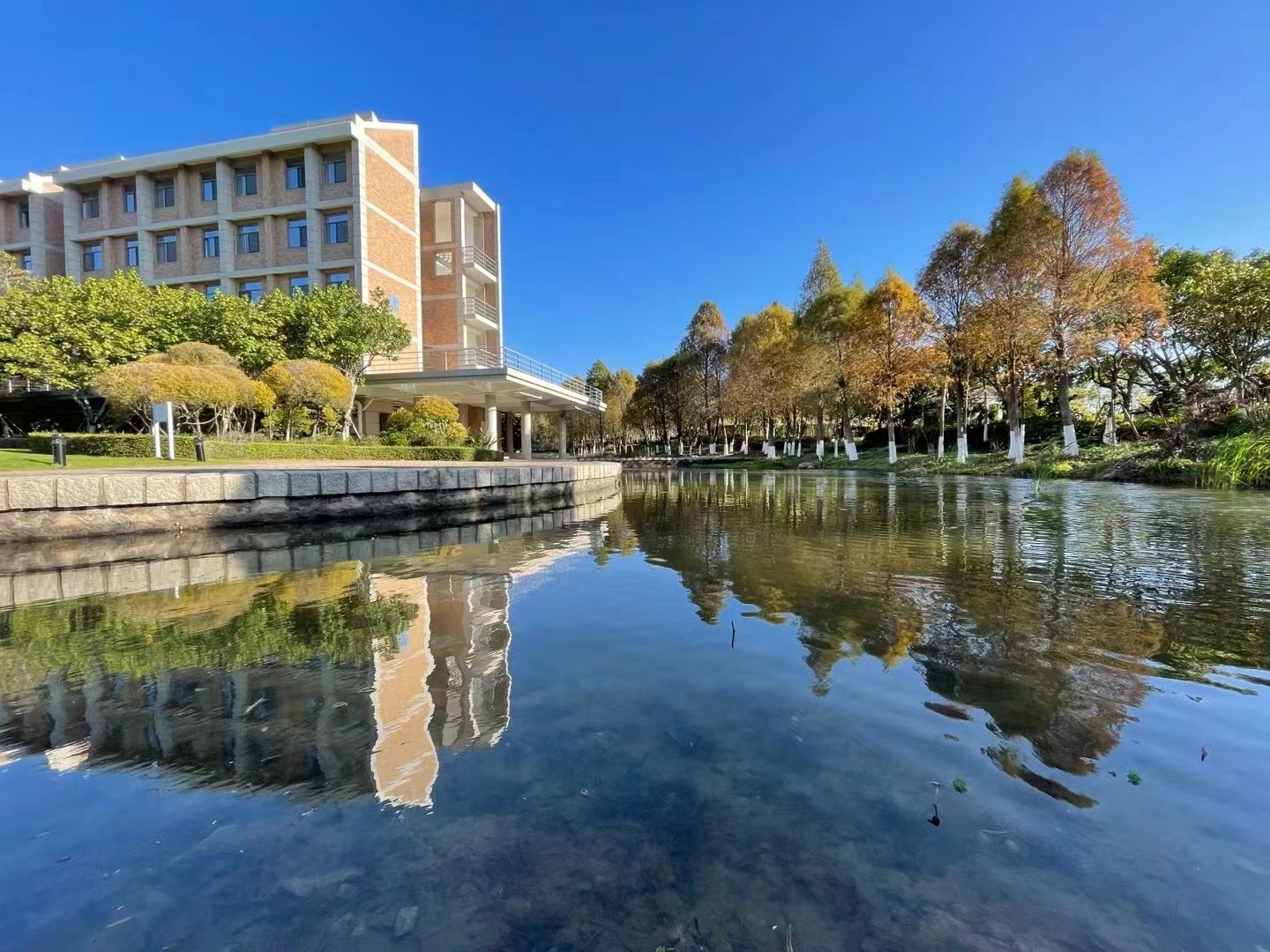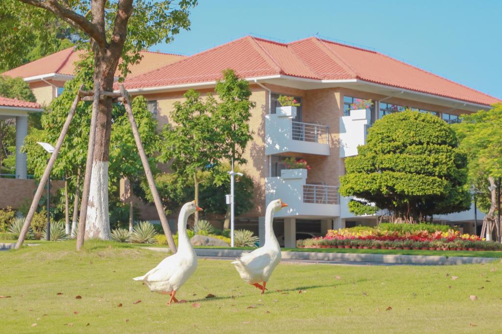 在蜿蜒的山中步道感受徐徐清风,在清澈的水岸边观赏白鹭嬉戏,在静谧的林中小径上追寻倏忽而逝的松鼠。可以和日月星辰交流,和山泉溪水晤谈;可以和每一棵树握手,和每一株草耳鬓厮磨。仰观宇宙之大,俯察花草之微,身有所属、情有所堪、神有所安;左顾青山如黛,右盼繁花似锦,胸有丘壑、腹有诗书、眉目有山河。在厦门国家会计学院的工作与生活,竟如此奢侈地融入了自然。
