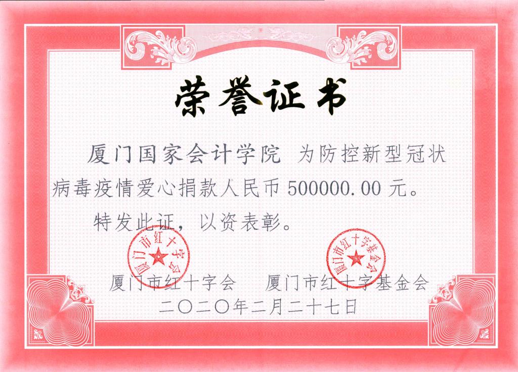 自新冠肺炎疫情爆发以来,学院积极贯彻落实党和政府的决策部署,扎实做好疫情防控工作,积极履行社会责任,先后两次向厦门市红十字会捐赠款项合计100万元,用于新冠疫情的抗击与防治,以实际行动支援厦门抗疫第一线,彰显了一份有速度、有厚度、有温度的“厦国会守候”,生动诠释了守望相助的人道主义情怀。福建省红十字会授予这枚荣誉徽章是对学院践行社会责任的一份认可,更是一份勉励。