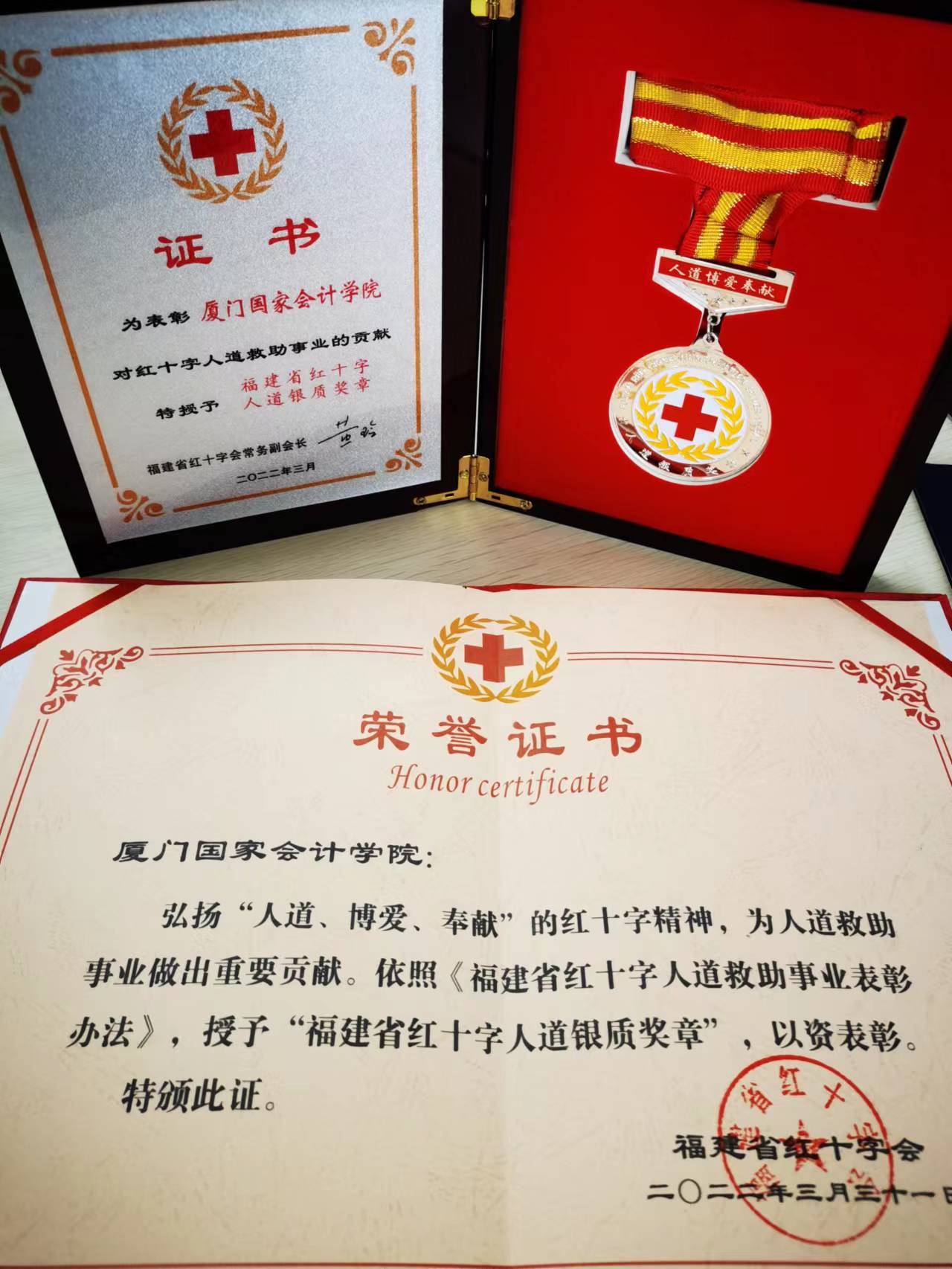近日,福建省红十字会授予厦门国家会计学院“福建省红十字人道银质奖章”,以表彰学院在支持人道救助事业方面作出的积极贡献。