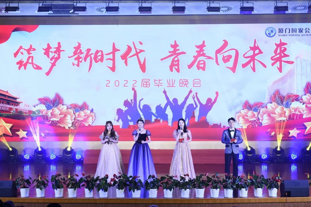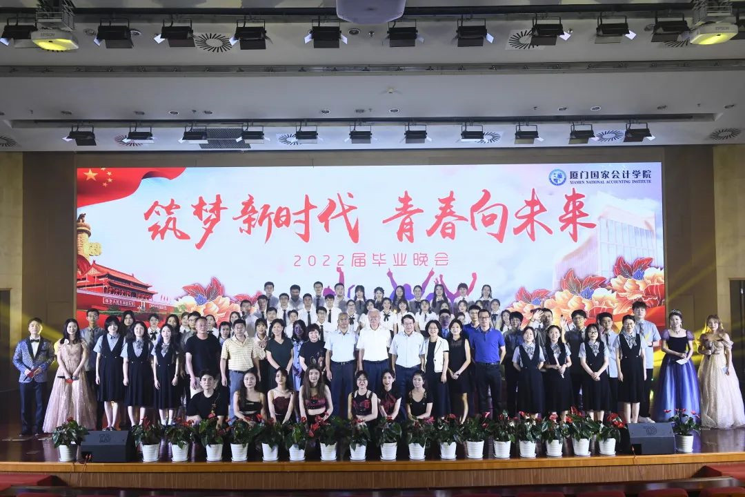6月23日19时30分,“筑梦新时代,青春向未来”——厦门国家会计学院2022届研究生毕业晚会在学院大礼堂精彩上演。厦门国家会计学院党委书记韩景义,院长黄世忠,党委委员、副院长李进西,党委委员、纪委书记、副院长郑涌,与学院教职员工、校外导师、培训学员、毕业生校友、学生家长、在校研究生共同观看了这场毕业季盛宴。晚会分为“序言” “以歌舞·飨青春” “赠箴言·予真情”三个篇章,2019级会计班张玉婷、廖恒坚、孙怡欣、2019级审计班庄佳佳担任晚会主持。