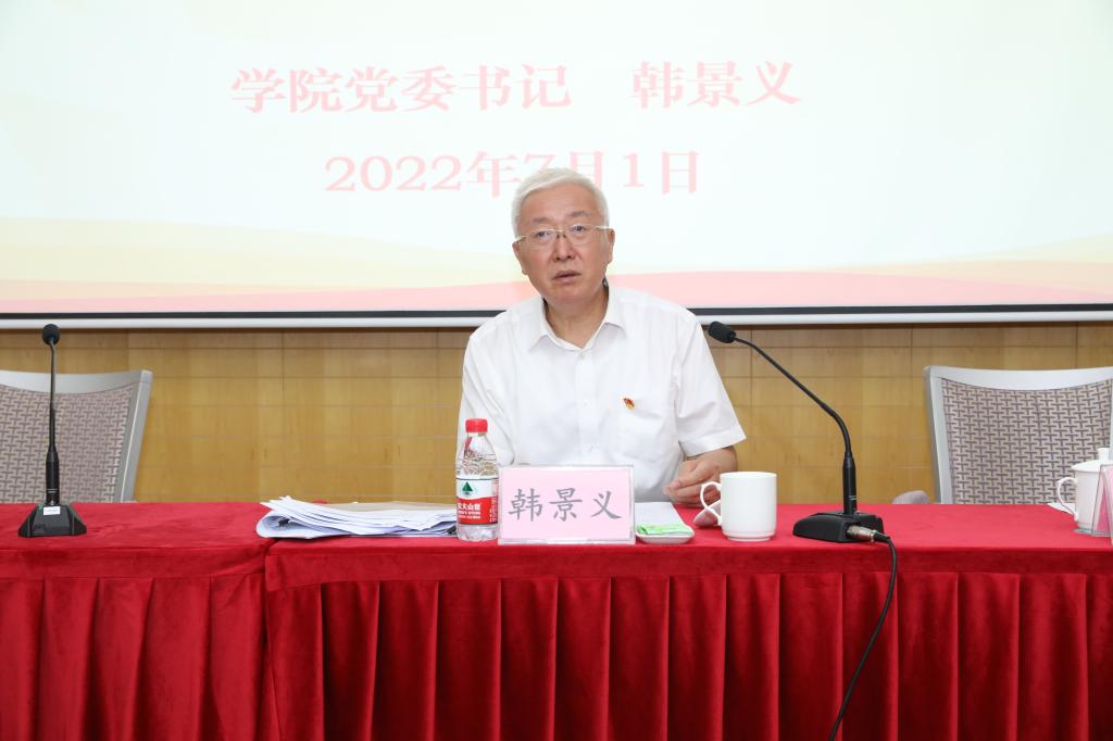 韩景义同志在大会上讲话。他首先代表学院党委,向获得表彰的“两优一先”集体和个人表示热烈的祝贺,向全体师生党员致以节日的问候。